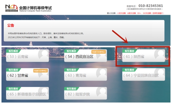 考生可登录中国教育考试网报名网址:ncre-bm.neea.cn(公网)或ncre-bm.neea.edu.cn(教育网),选择网页上“(61)陕西省”报名入口进入陕西省报名系统,在规定时间内根据流程提示完成网上注册、报名和缴费,逾期不予补报。