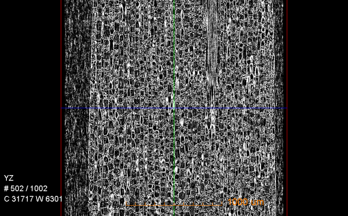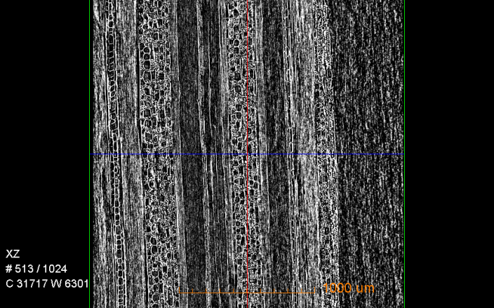 (2)切割木料断层扫描二维重构切片与3D渲染效果