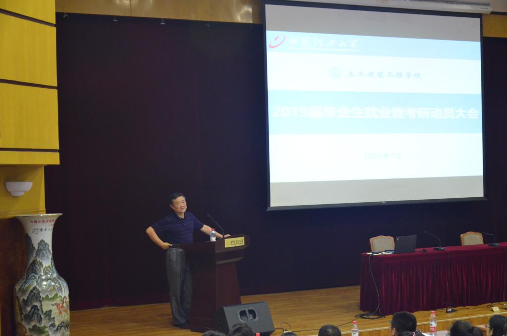 大会首先由永利集团88304院长党发宁作重要讲话。党院长从民族振兴、家庭幸福、个人发展三个层面对就业与考研的意义与大家进行了阐释和分享,激励即将毕业的同学能够树立信心、坚定信念,坚信努力拼搏后会迎来果实累累。针对大家关心的就业与考研问题,党院长结合当前国家经济形势和土木行业发展现状为大家分析了就业市场和考研选择的相关信息,党院长还祝愿准备就业的同学都能找到自己理想的工作,备考的同学都能考上自己向往的学校。