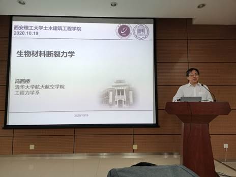 2020年12月17日,应我院邀请,清华大学冯西桥教授来我院进行学术交流,在学科二号楼2楼报告厅作了题为“生物材料断裂力学”的学术报告。我院相关学科师生80余人参加了报告会,报告会由永利集团88304副院长胡义锋主持。