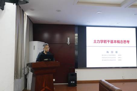 报告会上,梅国雄教授从土力学的二十三个基本概念入手,对土力学中的固结、自重应力、超静孔隙水压力、渗透性、蠕变、沉降、地基承载力、土坡稳定性等问题进行了深入浅出地剖析,报告精彩生动、内容丰富,激发了师生对于土力学基本问题的深刻思考。