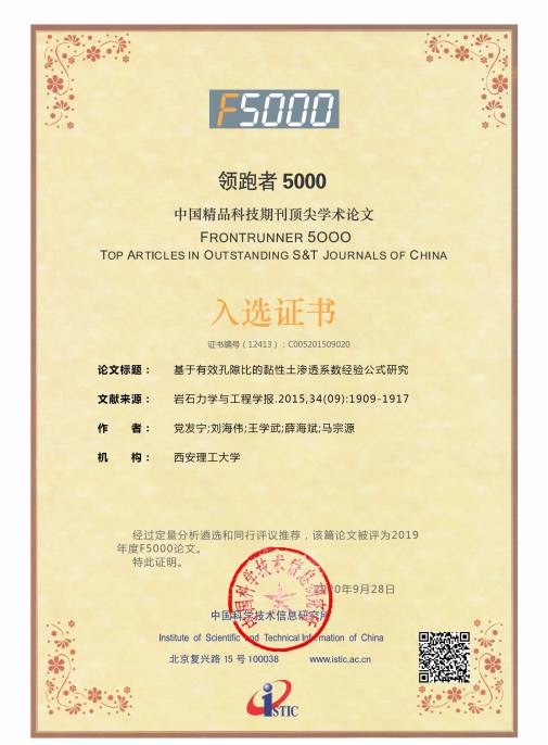 党发宁,刘海伟,王学武,薛海斌,马宗源.基于有效孔隙比的黏性土渗透系数经验公式研究[J].岩石力学与工程学报, 2015, 34(09):1909-1917. DOI:10.13722/j.cnki.jrme.2014.1583