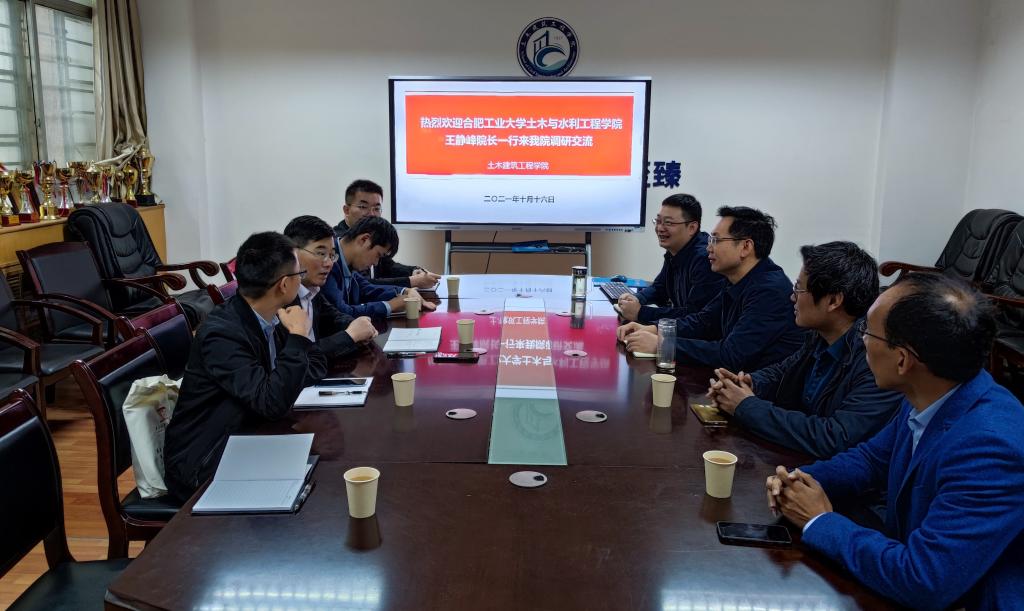 2021年10月16日上午9点,合肥工业大学土木与水利工程学院院长王静峰院长一行5人来我院开展调研交流。学院院长朱记伟、副院长郭宏超、实验中心主任王振山、土木系教授卢俊龙参加了会议。