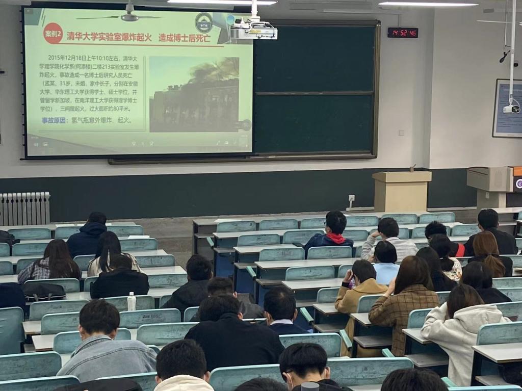 王振山主任对近期几所高校突发的实验室安全事故做了分析,结合土建学院实验室特点,分析了可能存在的安全隐患与问题,强调了进入实验室按规章制度操作的重要性,安全无小事,防患于未然。之后观看了《实验室特种设备、辐射安全、电气及消防安全》的视频,学习了特种设备规范操作、辐射安全防护、用电安全预防及消防应急处置的一些常识。