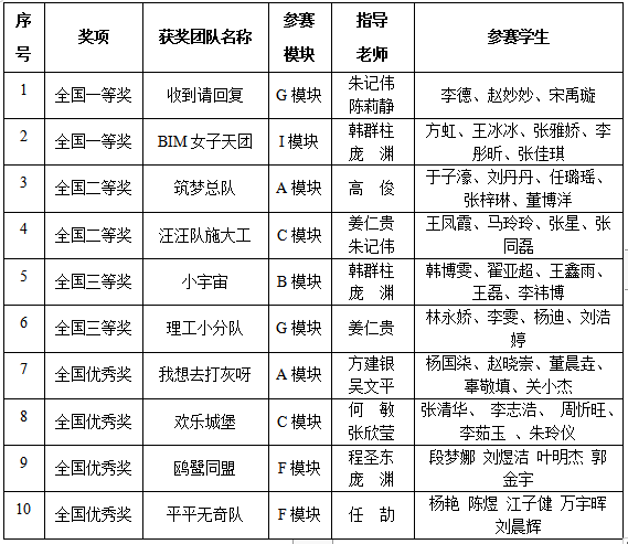 6月25日,由中国土木工程学会建筑市场与招标投标研究分会、广联达科技股份有限公司主办“第八届全国高校 BIM毕业设计创新大赛”总决赛圆满落幕。我院工程管理专业学生在本次竞赛中成果丰硕,共计获得10个团体奖项,其中2个全国一等奖,2个全国二等奖,2个全国三等奖,4个全国优秀奖。
