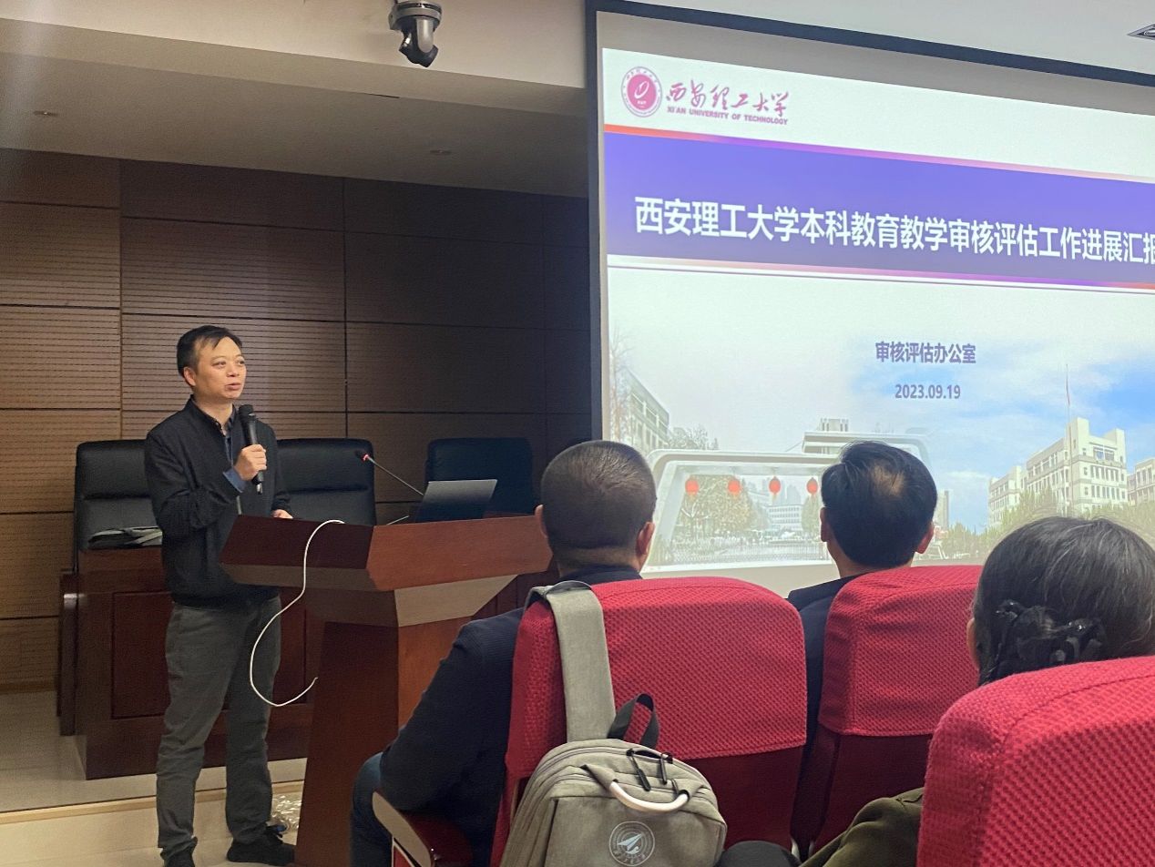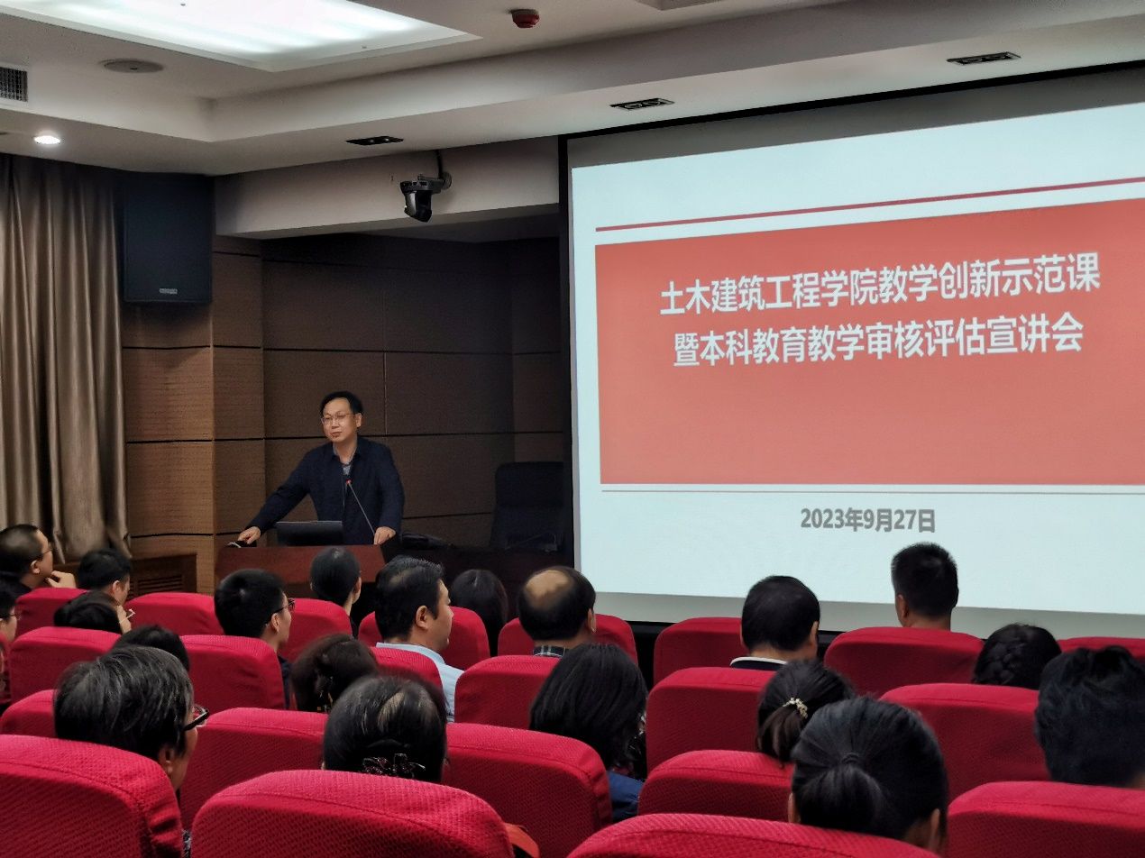王学通对新一轮审核评估的新理念、新要求、新变化进行了解读,对评估的指标体系进行了定性、定量分析,对学校职能部门、学院如何开展好各项迎评工作进行了宣讲,对开展自评自查工作中的重点任务和时间节点进行了梳理。他强调学院教师一定要提高认识,凝心聚力,确保审核评估工作顺利开展。
