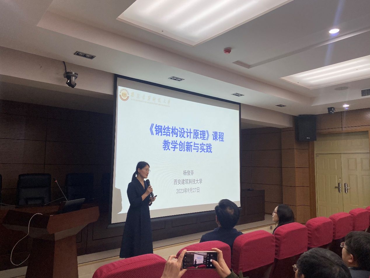 杨俊芬从国家级一流课程《钢结构设计原理》的概况、创新和成效入手,以“普通螺栓连接的工作性能”为例,从基本信息、教学分析、教学活动、教学过程和教学反思这五个方面,分享了整个课程在教学设计过程中的思考。