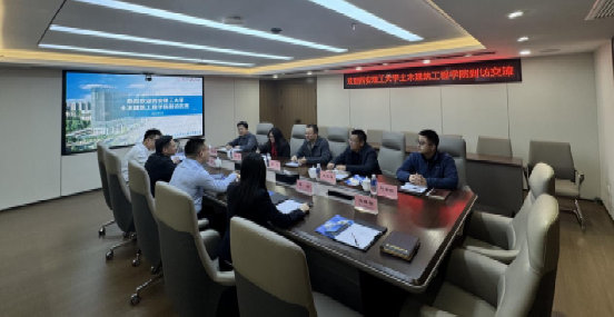 中建五局三公司西北公司党委副书记关敬男对学院一行表示热烈欢迎,他从发展历程、组织架构、代表项目、人才培养体系等方面对公司进行了介绍。院长赵钦介绍了学院办学历史和发展概况,并结合学院研究方向对校企合作契合点进行了介绍;党委副书记兼副院长王宗强介绍了学院学生培养及毕业生就业工作;院党委书记刘峰对公司多年来对学院的大力支持表示感谢,希望为此契机,在党建联建、实习就业、科研项目和学历提升等方面进一步深化合作,推动校企共赢。