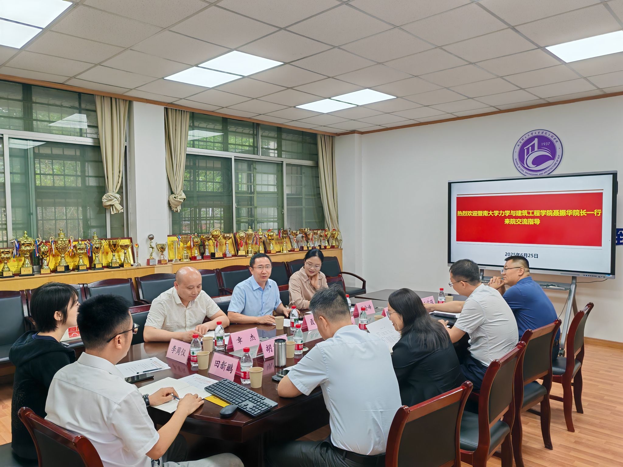 6月24日下午,暨南大学力学与建筑工程学院院长聂振华一行来我院进行调研交流,座谈会在学院301会议室召开。学院党委书记刘峰、院长赵钦、党委副书记王宗强、副院长胡义锋参加了本次交流活动。会议由刘峰主持。