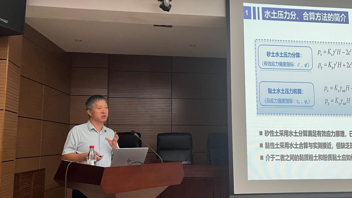 水土压力分算与合算方法,在公式形式与计算结果上都有很大差异,对基坑围护变形及基坑稳定性分析结果影响较大。一般认为采用水土分算方法更科学、合理,而工程界经常使用的水土合算则缺乏理论基础。本次报告从水土压力分、合算方法的基础出发,给出了一个水土压力合算与分算的统一计算方法;分析了水土压力统一计算方法的工程意义,以及由此诱发的土力学问题。进一步地,说明了当前规范方法中在水土压力计算时广泛存在的强度指标误用问题。之后,开展了关于水土分合算问题的进一步讨论,引发了在场听众对当前土力学相关知识的深入思考。最后,分析太沙基土力学的方法论与经验科学化特征,提醒研究生们注意土力学体系存在的内部矛盾问题。