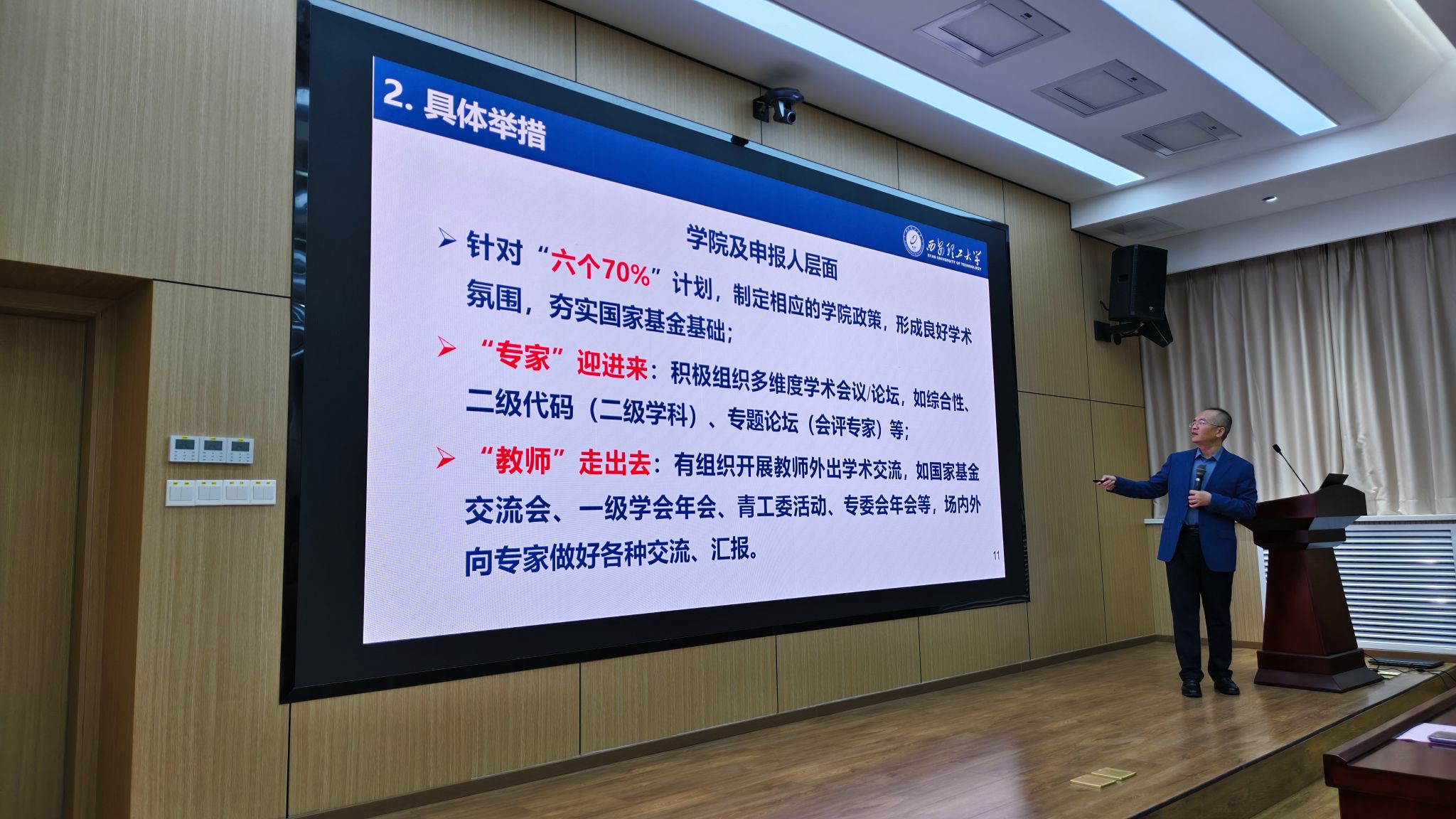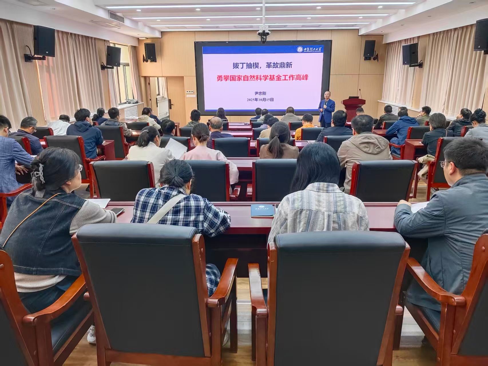会上,尹忠刚解读了学校最新出台的申报激励政策,从政策细则、保障措施等方面为教师们提供了清晰指引;并从学校、学院、申报教师个人三个层面,系统梳理了基金申报全流程的重点任务。