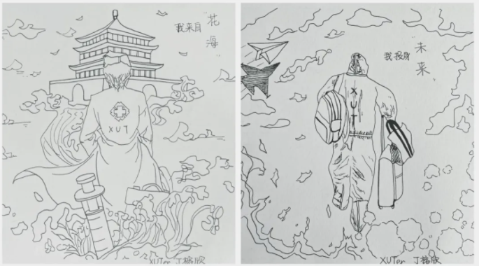 “用手中的画笔致敬‘疫’线的志愿服务者,是我发自内心想做的事情。”工管203班的郑袁欣说道。