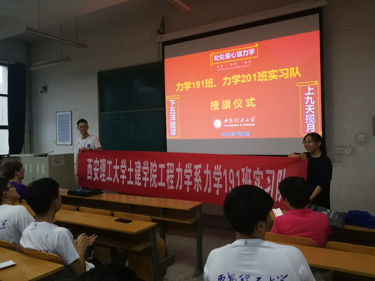 图4.主任王砚为力学191班实习队授旗