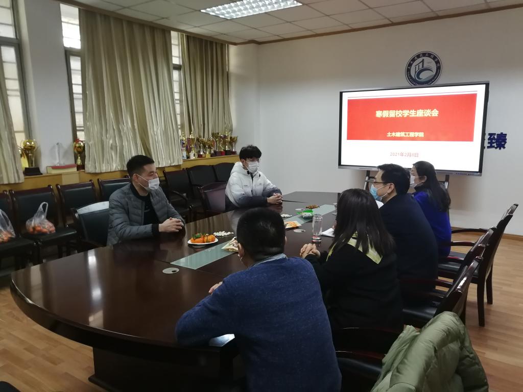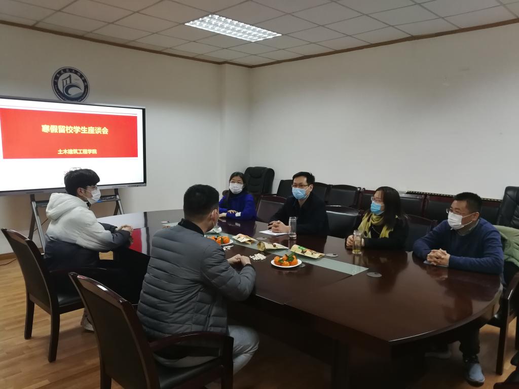 2月8日上午,永利集团88304在会议室301与寒假留校学生座谈。院长朱记伟、副院长赵钦、院办主任刘敏、学工办主任王宗强、辅导员李江参加。