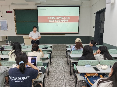 会议第一阶段,学院党委副书记兼副院长王宗强立足学院往届毕业生去向数据,结合学院现实情况,从就业形势、求职就业规划、相关就业政策等方面为同学们作了就业指导。副院长胡义锋详细介绍了永利概况、研究生的招录与培养,并根据研究生录取数据为同学们作了考研动员。最后,院长赵钦做了总结讲话,她与同学们探讨了土木行业今年面临的挑战和转型现状,强调了提前规划和积极行动对每位同学的重要性,希望同学们综合分析自身条件,不管就业还是考研,都要全力以赴,用脚踏实地的奋进之姿促进实现各自的人生价值。