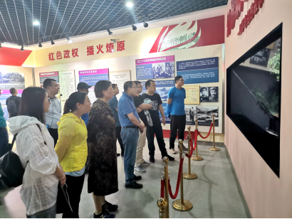 6月5日,学院党委一行一路蜿蜒四个多小时抵达红军镇——全国唯一以“红军”命名的乡镇。在红军纪念馆,全体党员首先整齐列队,面向红军英雄纪念碑肃立,在鲜艳的党旗前,全体党员重温了入党誓词,铿锵有力的誓言无不表达了自己不忘初心、牢记使命的坚定决心。随后,大家拾级而上,在红军烈士墓前鞠躬致哀,并跟随红军镇张镇长的引导,通过观摩实物、图片、影视等形式,再次追寻红色足迹,真切地体会到在当年艰苦的战争环境下,革命先辈们不屈不挠、为民族独立和人民解放事业抛头颅洒热血的革命精神。