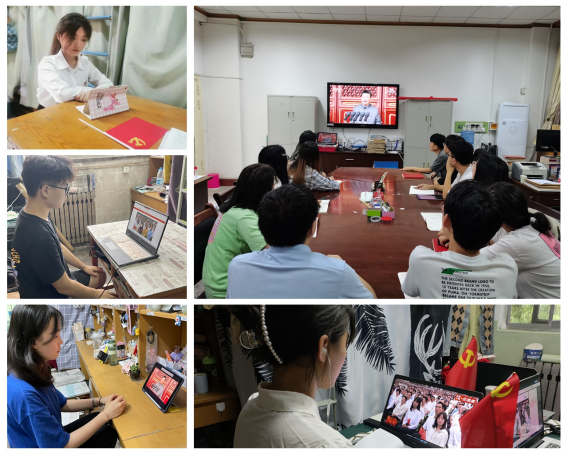 我院组织全体师生认真观看了庆祝大会,当习近平总书记发表重要讲话时,大家聚精会神聆听并不时做着笔记。直播结束后,大家意犹未尽,结合自己的入党历程、对党的认识和我党的光辉事迹,开展了热烈的讨论,纷纷发表自己的感想。
